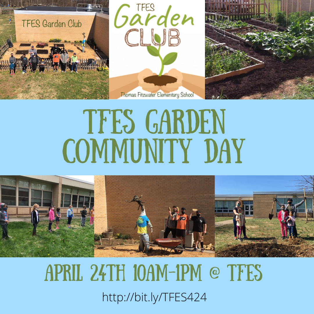 WHAT: The Garden Club is celebrating Earth Day/ Week! We will be planting trees, planting flowers, replacing invasive plants with natives, maintenance to the TFES FOOD GARDEN, and other gardening tasks to grow plants and young minds!