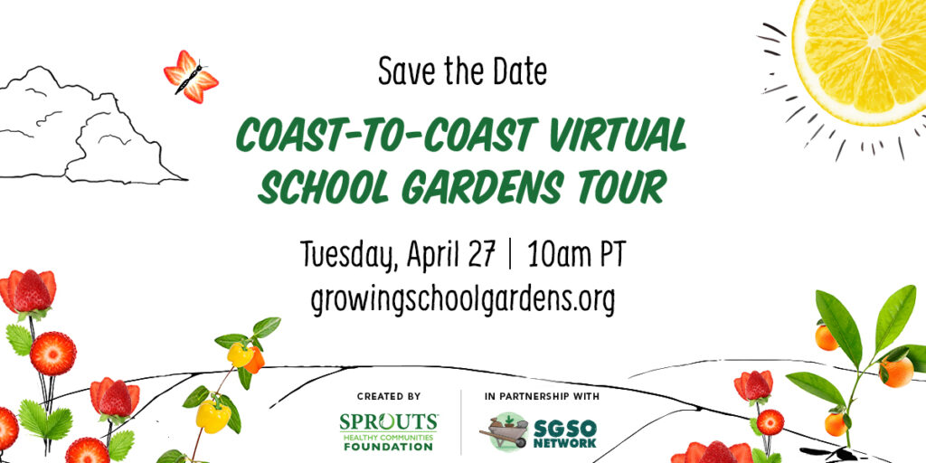 Join hundreds of schools on April 27 for the first-ever virtual school garden tour and educational broadcast event. Think virtual school assembly…by kids for kids! This event will make stops at seven school gardens from Hawaii to D.C. and connect educators and students across the country to celebrate the power of school gardens!