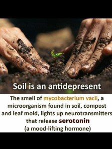 Read more at Gardening Know How: Antidepressant Microbes In Soil: How Dirt Makes You Happy https://www.gardeningknowhow.com/garden-how-to/soil-fertilizers/antidepressant-microbes-soil.htm