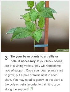 If attached to the cotton ball, no worries — that whole root system with the organic cotton into a pot of soil or in-ground garden bed. Water and provide a trellis because beans are climbers!
