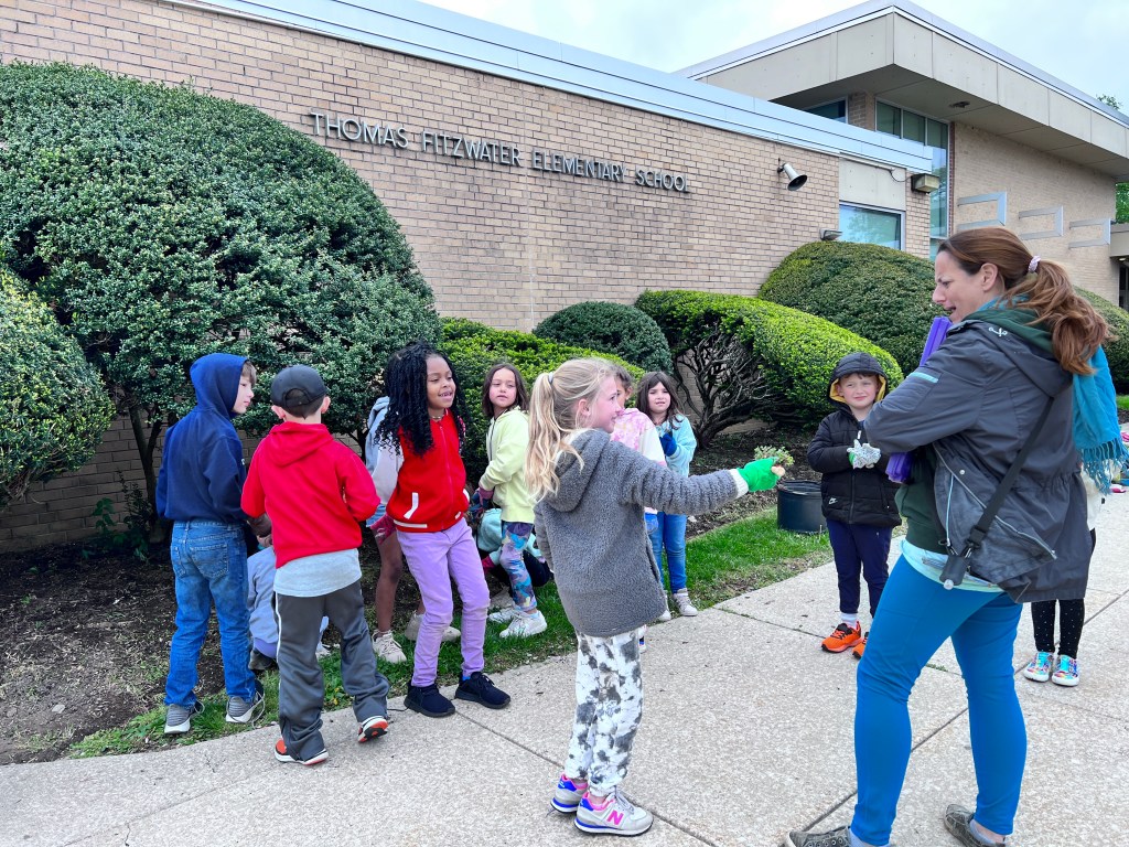 75 students from our younger grades (K-2nd grades), met on Friday for their first hands-on gardening lessons @Lunch! The previous week, we had 40 of the older students (3rd-5th grades) for a total of 115 Students in the Program!