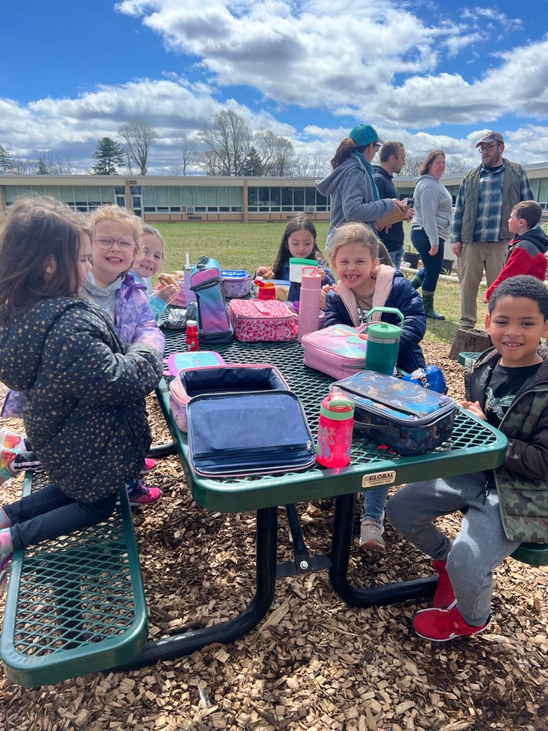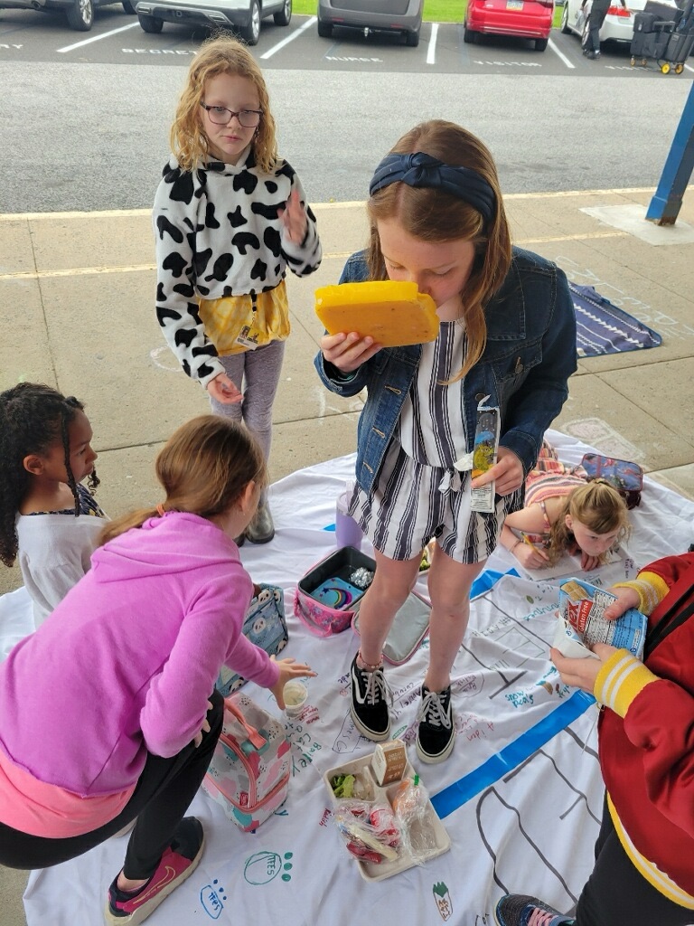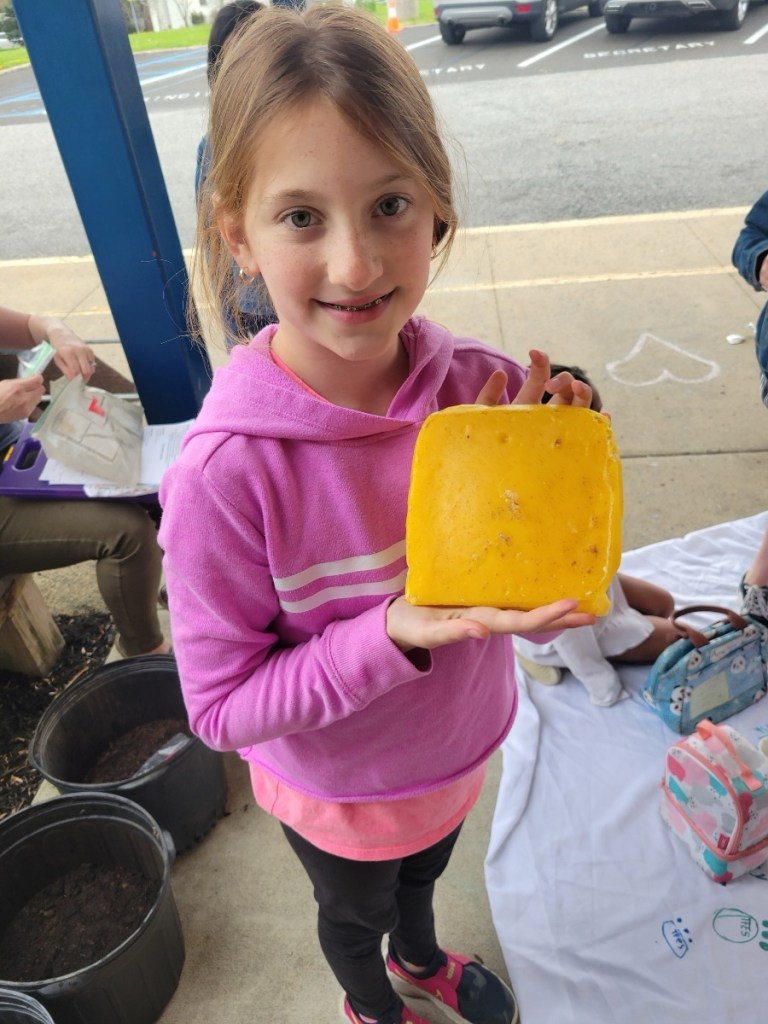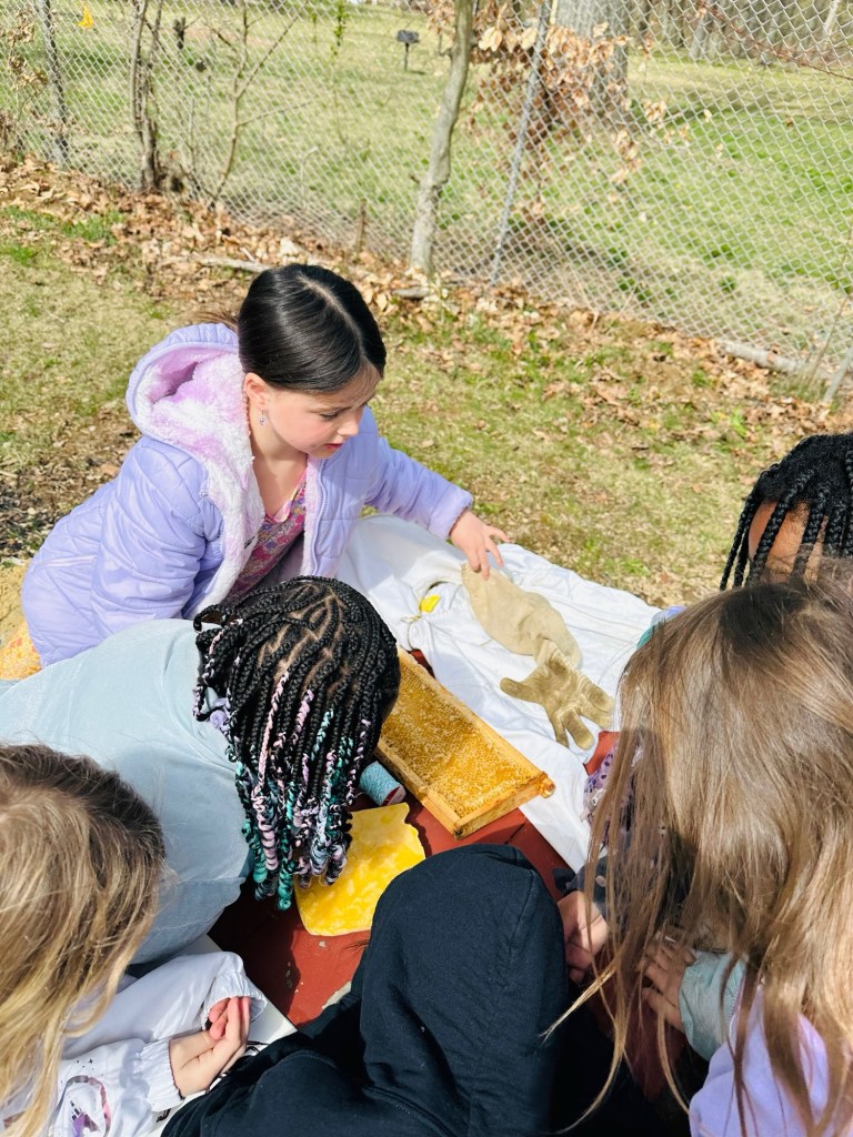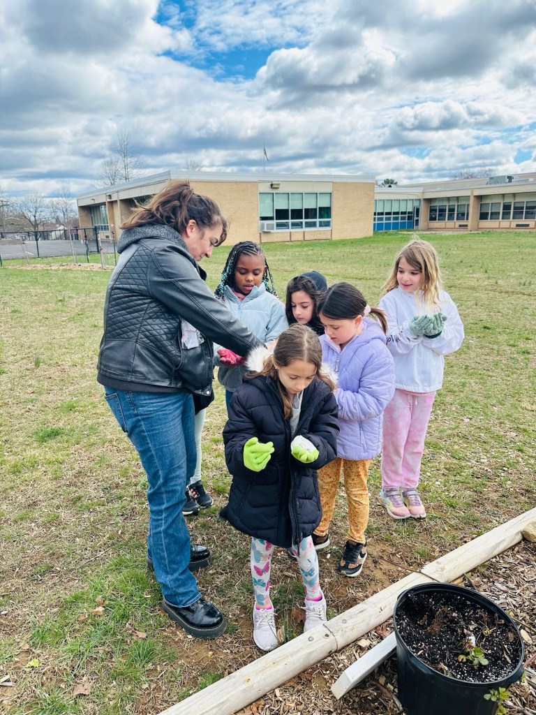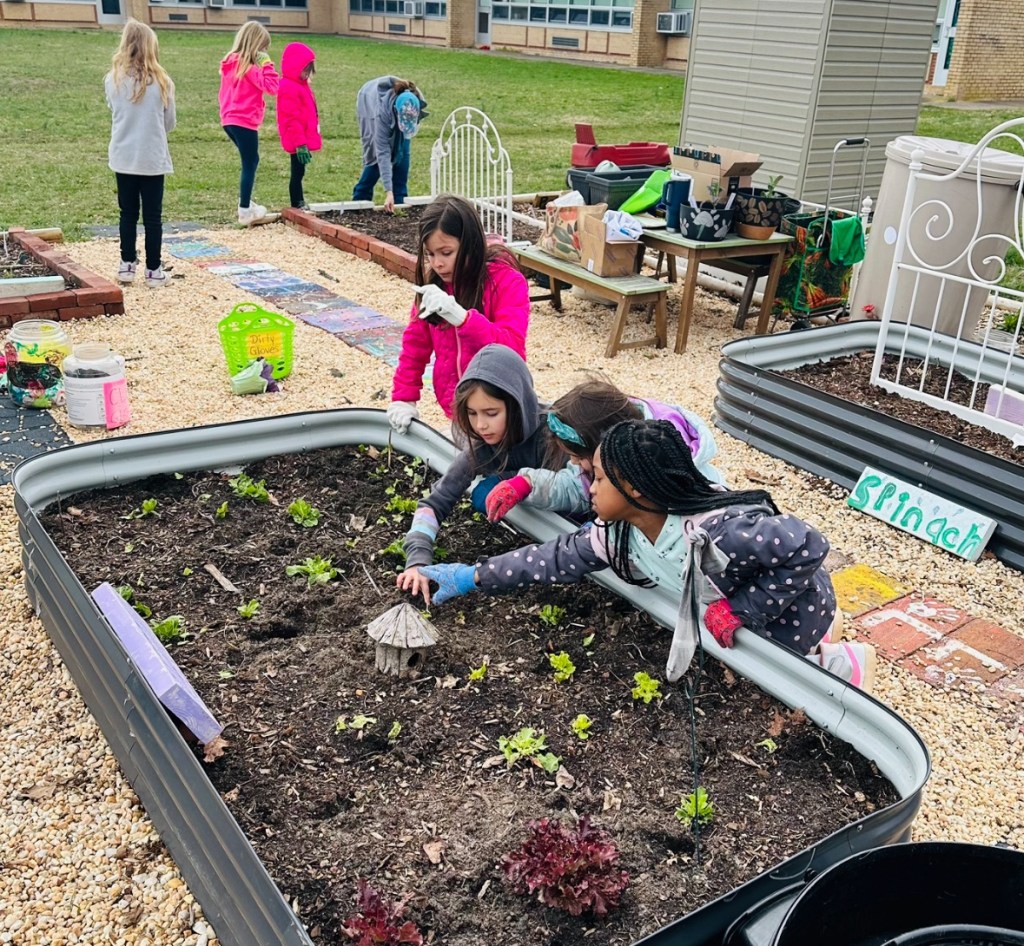 After enjoying a picnic lunch at the TFES Food Garden / New Outdoor Classroom. We are so thankful to Mr Springer for helping us teach in Garden Club this school year. Using station rotations, Mr Springer taught our classes about “Helper Bugs”. Did you know that Mr Springer is not just a gym teacher, but he is also a farmer and a bee keeper. The students were excited to see live caterpillars/chrysalises/butterflies, see worms up close, types of dead bees, and trying on a bee-keepers hat! We also got to utilize butterfly and insect educational materials donated by the Camden Children’s Garden.