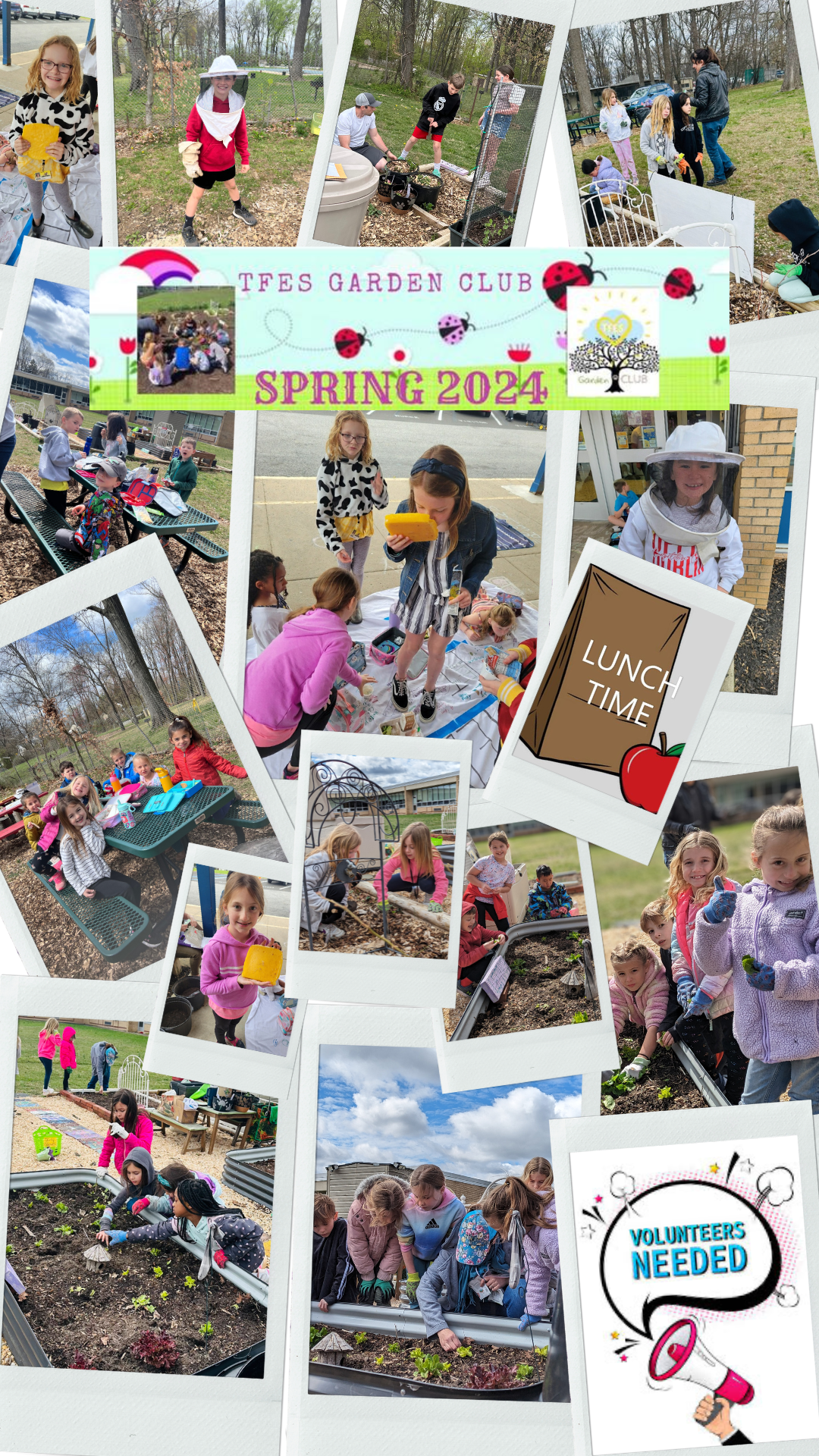 If your student did not want to miss recess (we get it), but you still want to here about Community Events, afterschool meetings, and Summer Signups for Watering, and/or help with special projects, please email TFESGardenClub@gmail.com.
