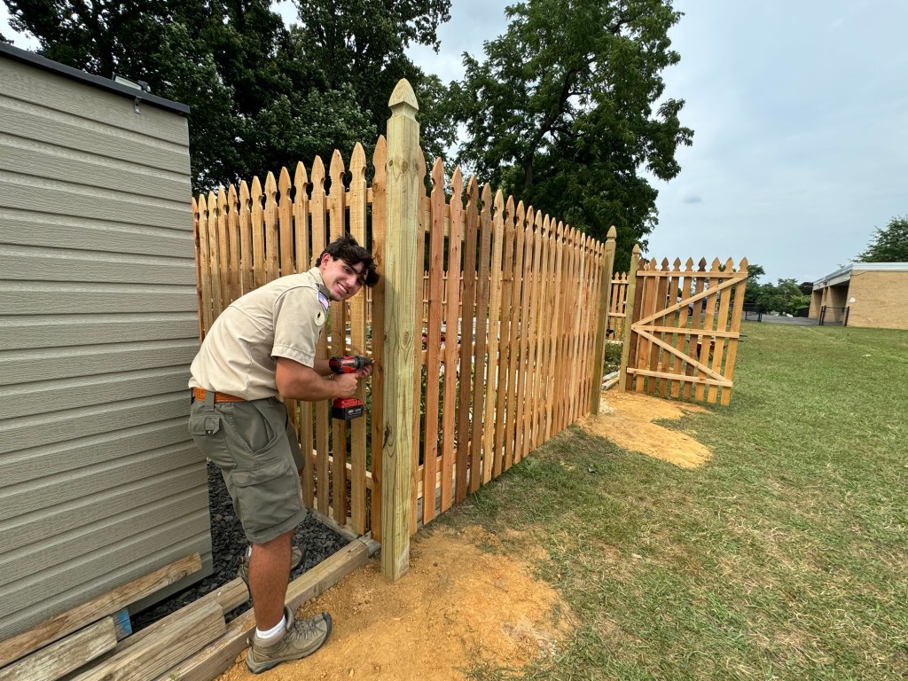 - In addition to building our new fabulous fence, Troop 98’s younger members assisted with some chores around the food garden, outdoor classroom and even some prep work to help beautify the front of school.