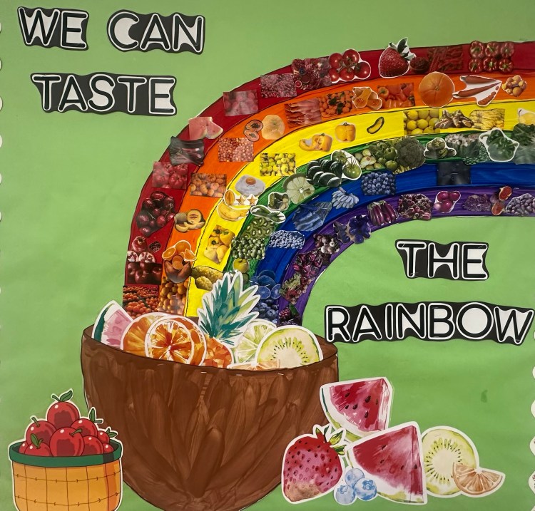We also started a craft like this, featuring the colors, which represent various nutrients found in fruits and veggies. This dovetails a lesson we reviewed during the TFES Garden Club’s Winter Assembly for the whole school.