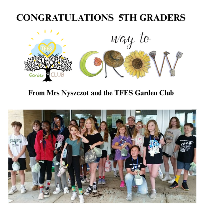 Congratulations to our 5th Graders. You will be missed dearly at TFES! It was an honor to grow with you! Please stay tuned for volunteer opportunities for middle/high schooler students.