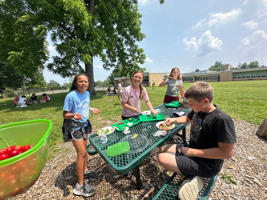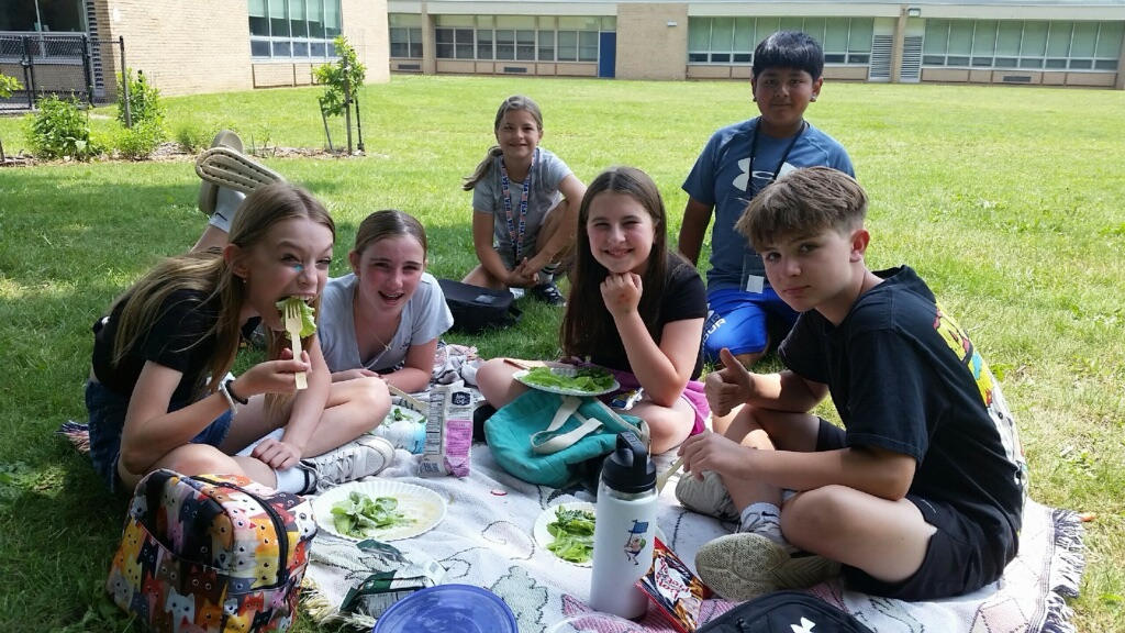 On Friday, June 6th, we celebrated the Annual Salad Party for Grades Kindergarten, 4th, and 5th (our last @Lunch of the school year)! Salad Parties give our students the Taster-tunity (that means Opportunity to Taste) the foods they grew, which were ready to harvest! Our amazing volunteers served the students while giving food facts, teaching about the health benefits of each of these fantastic foods that we grew! We then played trivia to review the food facts that we just learned!