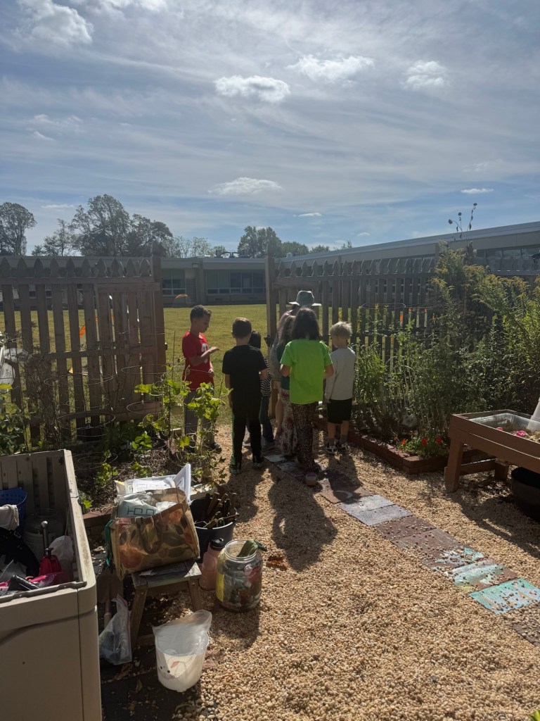 On October 3rd, we had a beautiful day in the garden and outdoor classroom with 1st, 2nd, and 3rd grades. We are excited to do it again with kindergarten, 4th and 5th on Oct 17th! This program offers hands-on gardening activities at lunch/recess time as an enrichment program for all TFES students.