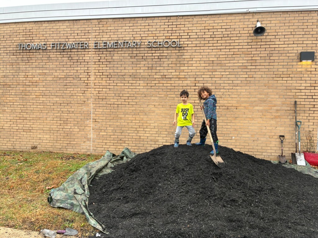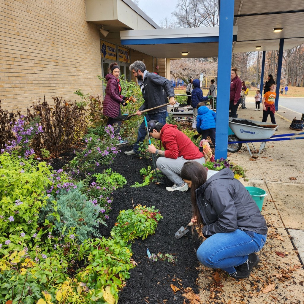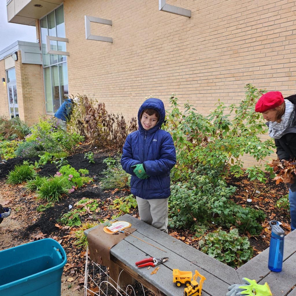 - Thanks to super-volunteer / leader Cindy Nuss, and her colleague Maureen, who helped to lead our volunteers in preparing the school’s front Native Garden for winter.