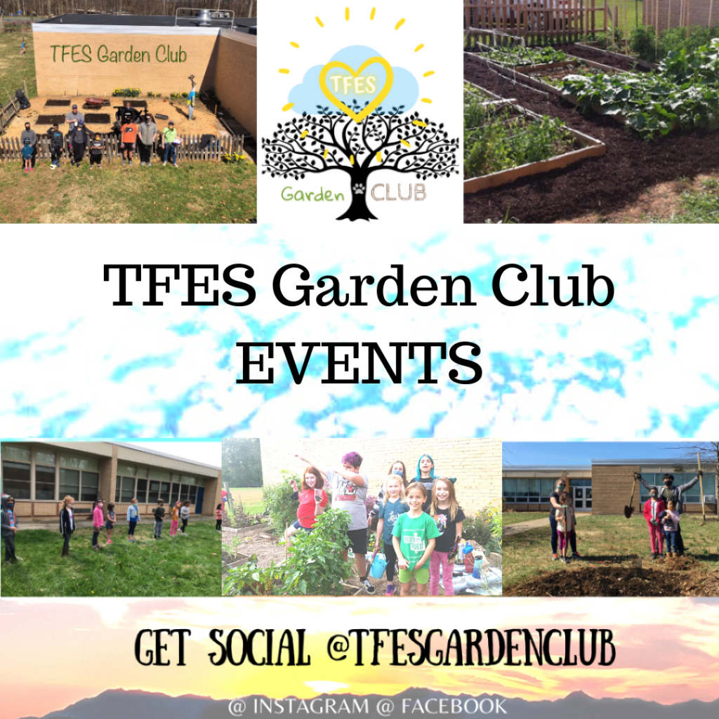 TFES Garden Club has exciting happenings, so stay tuned here to GARDEN CLUB EVENTS PAGE as we add events, make updates, volunteer signups and more info! Below are some events to add to the calendar: