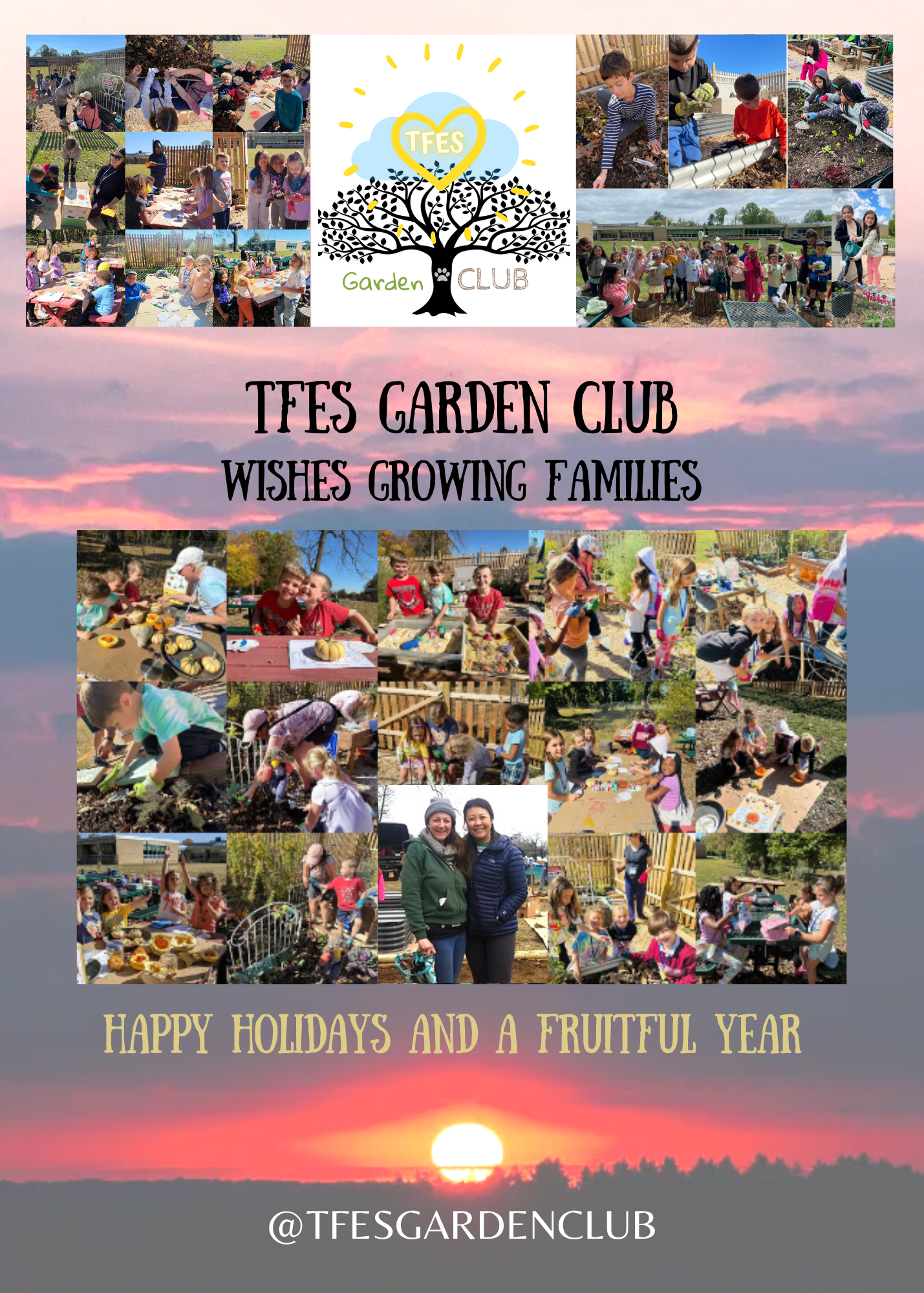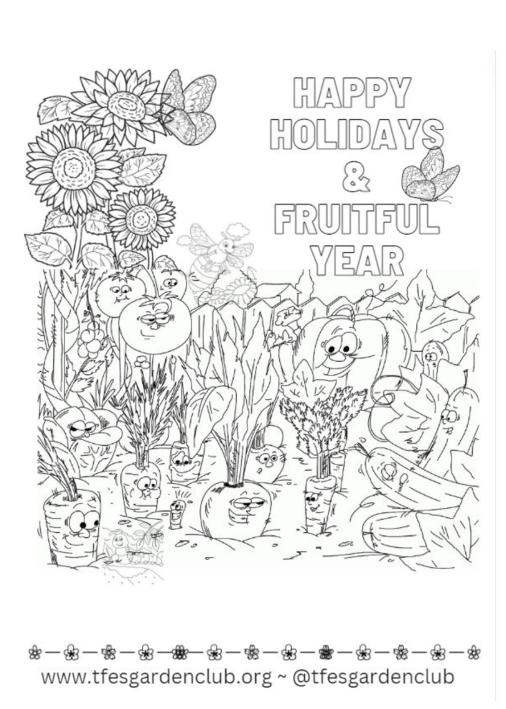 To Thank Our Families, we created this fun Holiday Color Page. You can print it and make a card for a loved one. This way, you can tell your friends about TFES Garden Club — growing food and young minds at the edge of Upper Dublin.