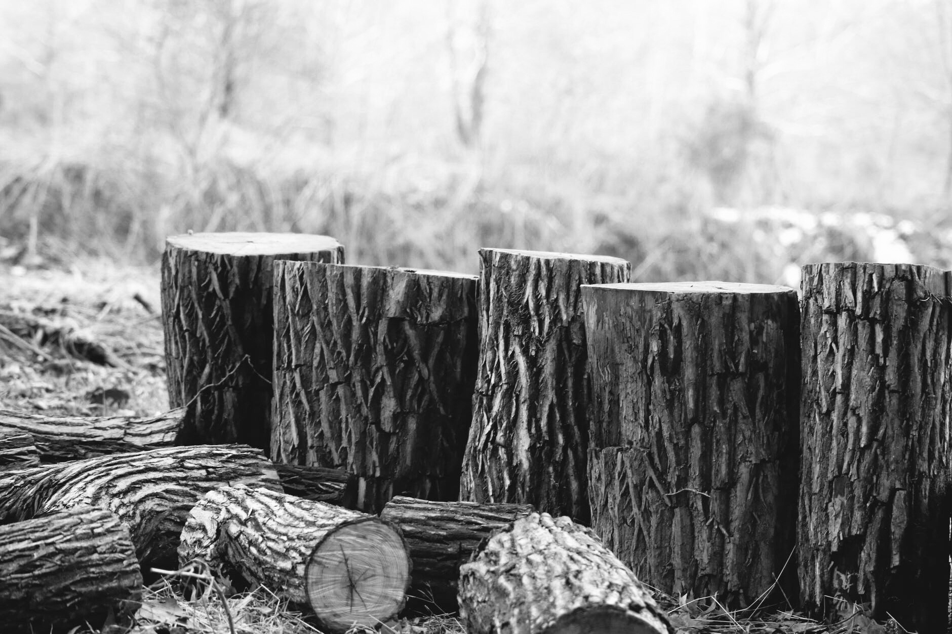 26 Stumps of Wood for Seating. (26 letters of the alphabet will be painted on them for student seating)